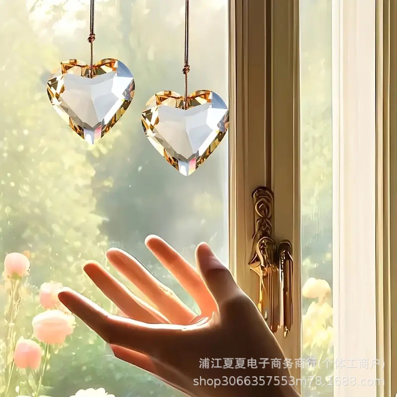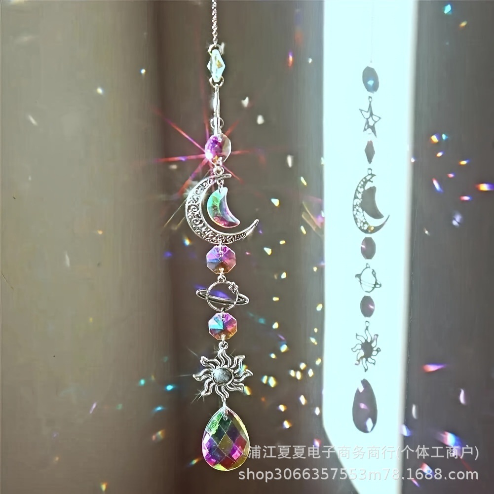 水晶石彩色爱心挂件太阳捕手捕梦网挂饰彩虹礼物装饰TEMU爆款