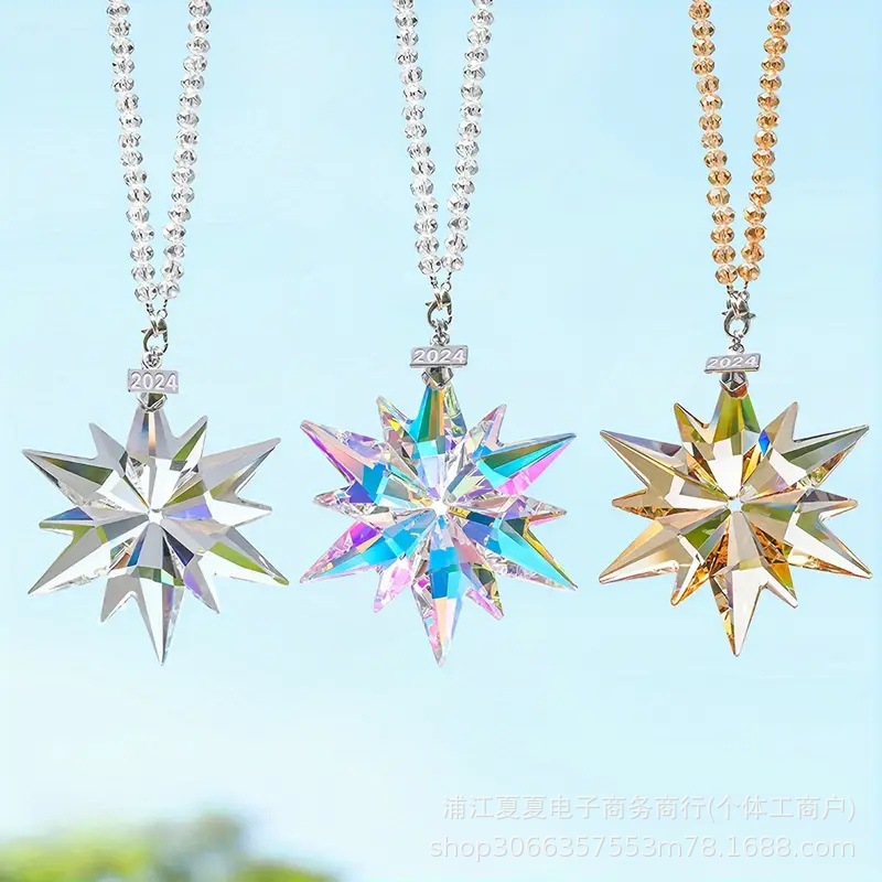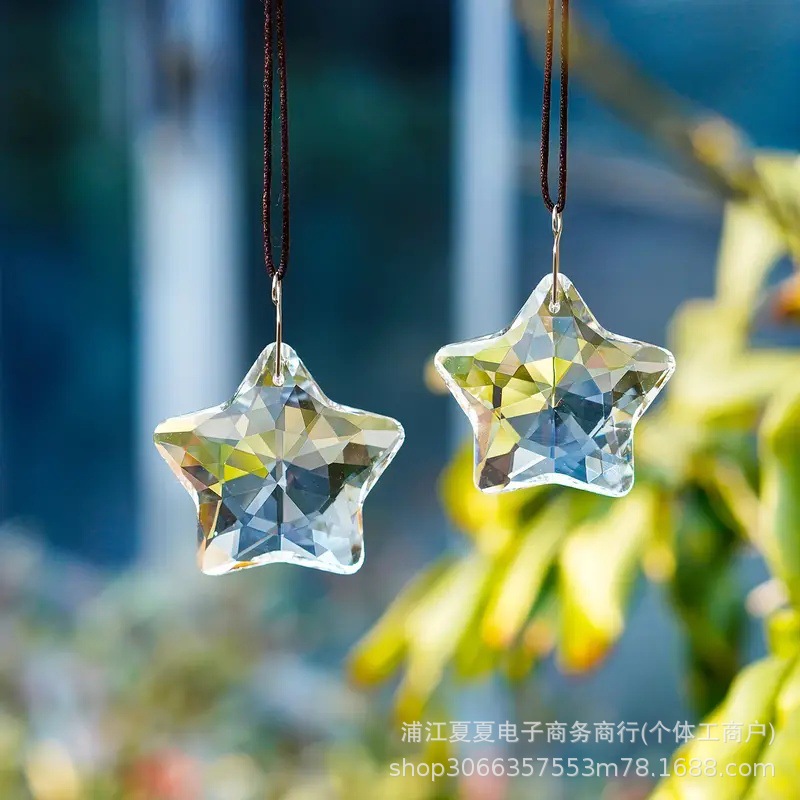 跨境亚马逊爆款太阳捕捉器水晶AB幻彩星星吊坠圣诞树挂饰直供现货
