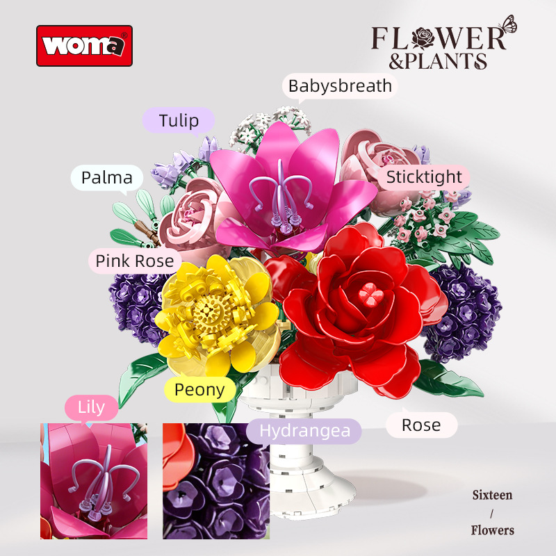 99143高脚杯积木花 礼品永生花束家居卧室装饰摆件益智拼装批发
