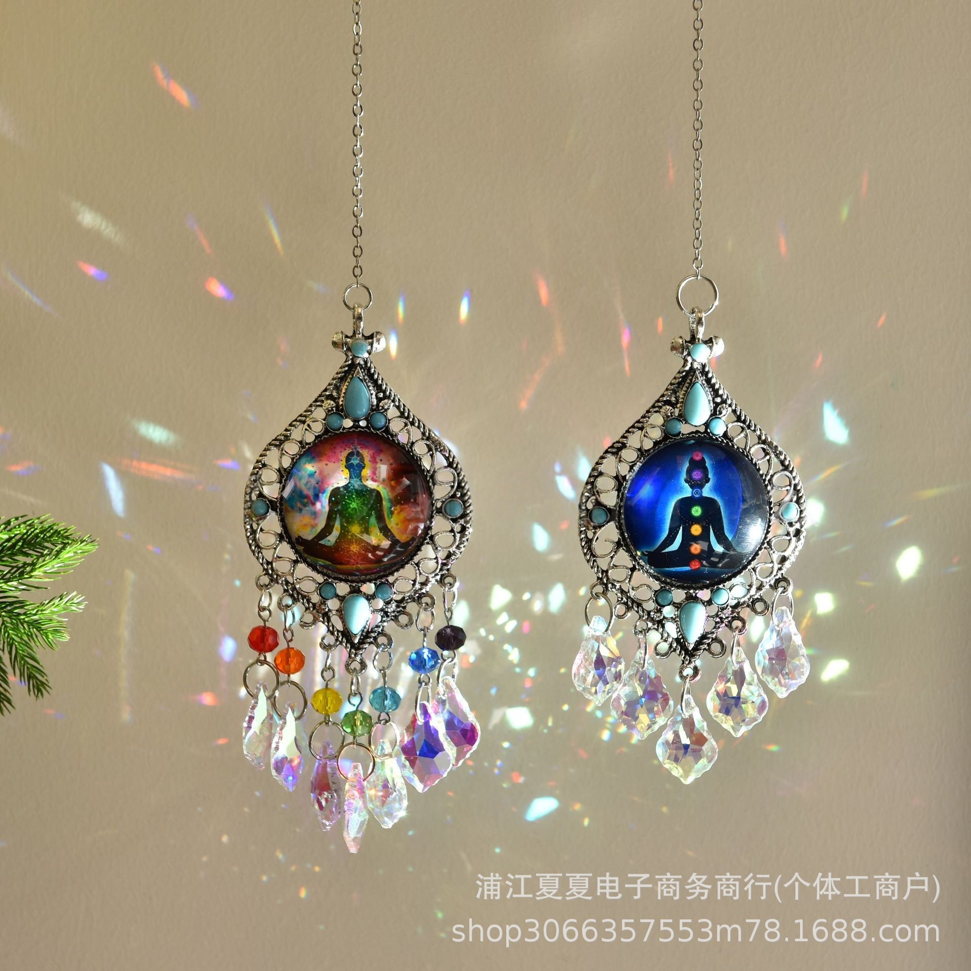 亚马逊跨境新品家居庭院悬挂饰品7色能量平衡水晶太阳捕手风铃挂
