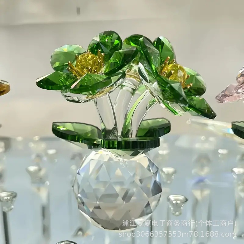 水晶圈莲花摆件工艺礼品创意桌面客厅柜台装饰摆饰送女朋友跨境货