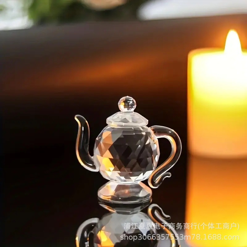 水晶工艺品玻璃茶壶茶具装饰器皿小摆件一件代发()生日礼物