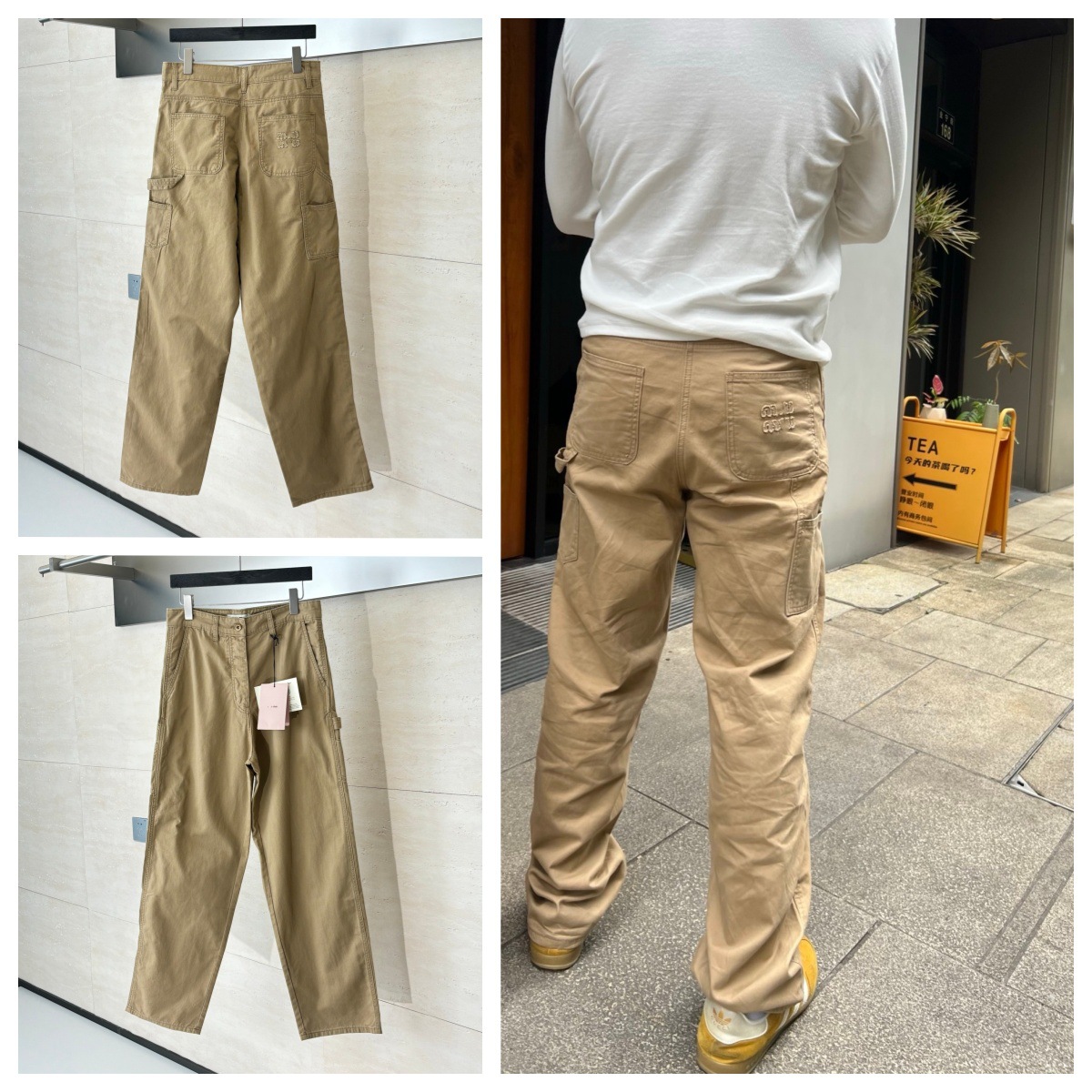 正确版本缪家25FW新款MIU卡其立体字母伐木工装裤男女百搭休闲裤
