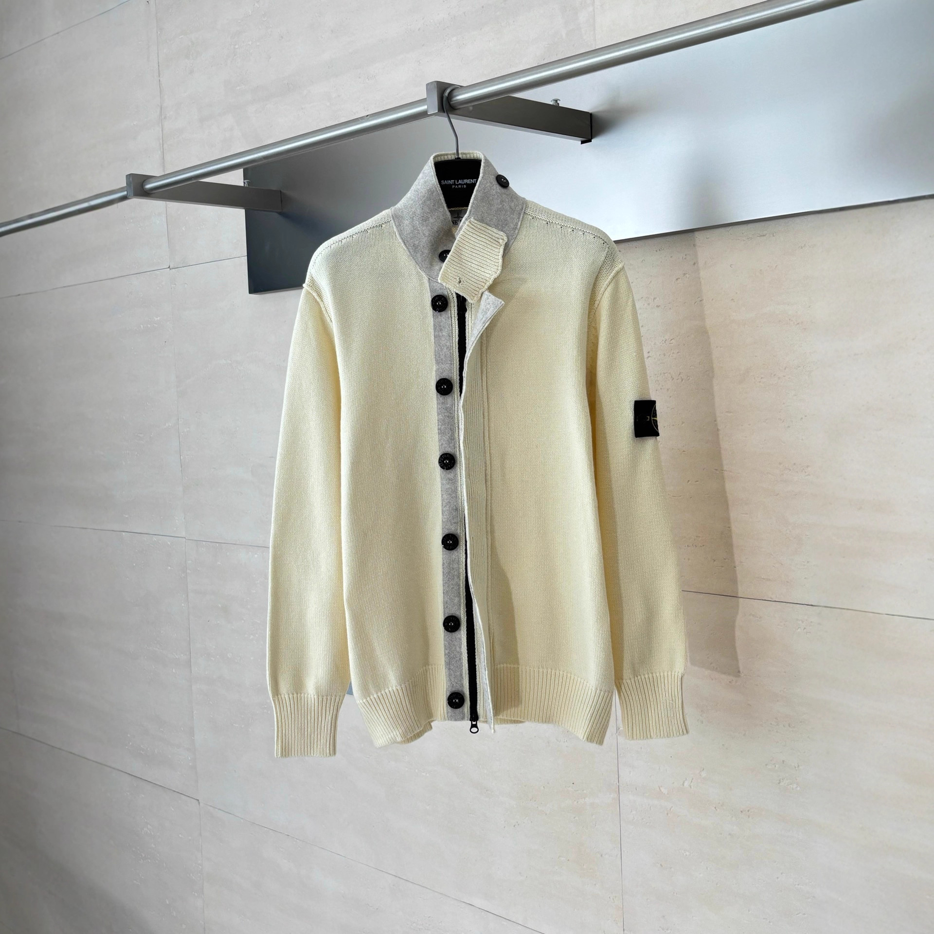 正确版本25新款STON石头岛羊毛针织拼接拉链开衫男女同款休闲外套