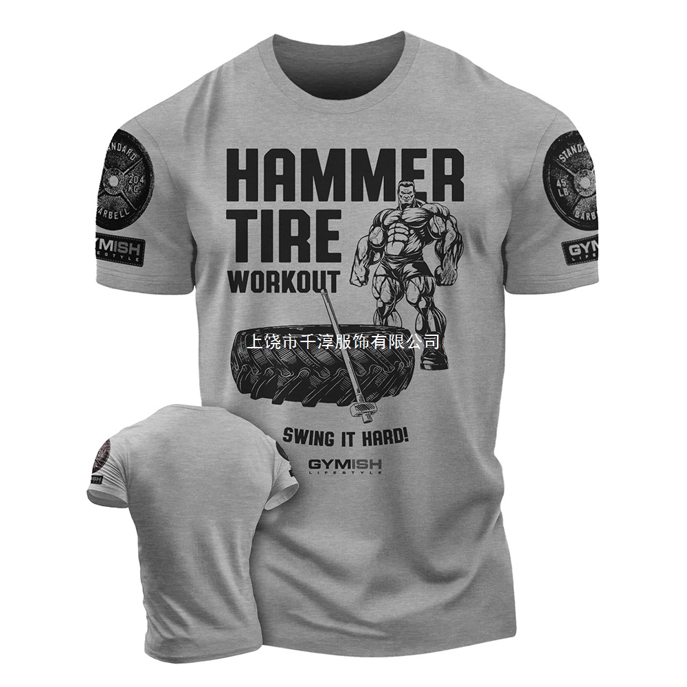 3打印锤子轮胎锻炼恤有趣的健身房恤高品质的棉男子短袖肌肉男子