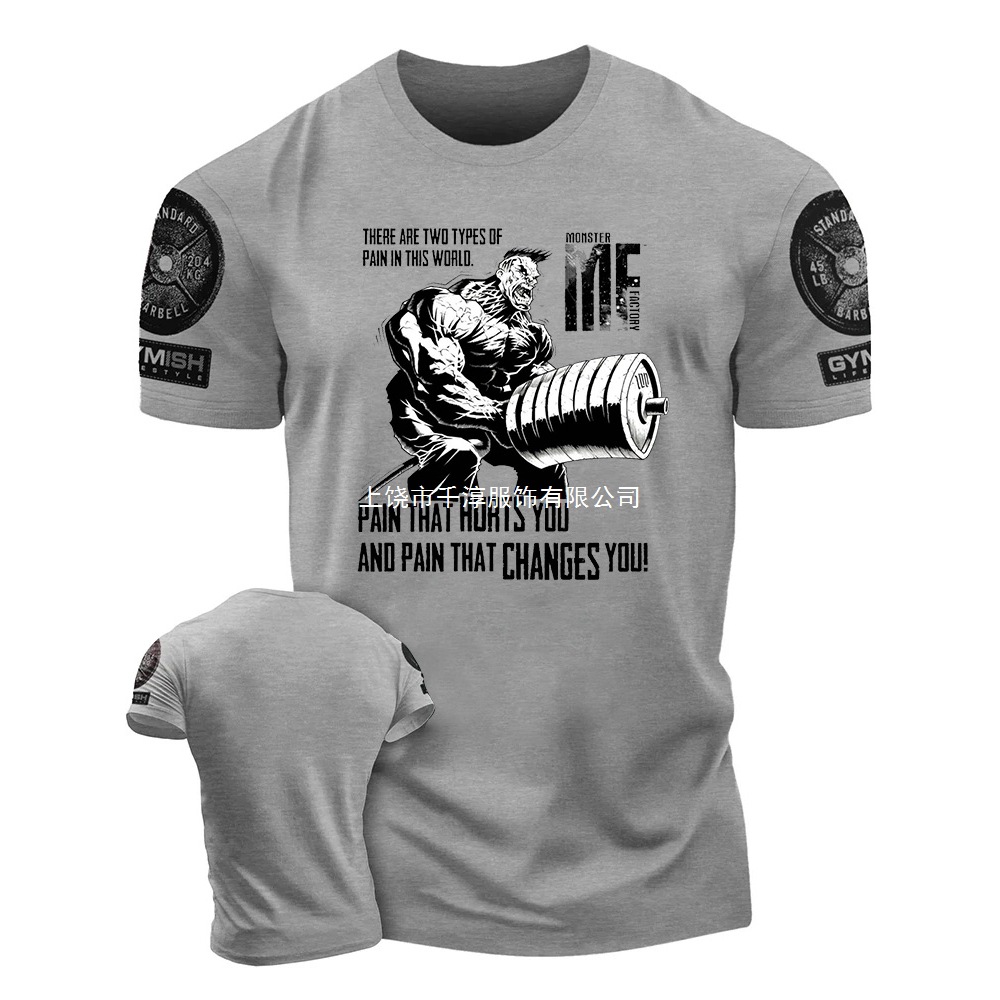 2024欧美夏季健身房休闲男士恤硬汉式短袖恤快干恤体育亚麻