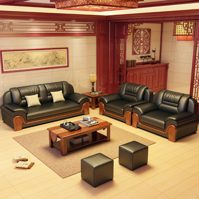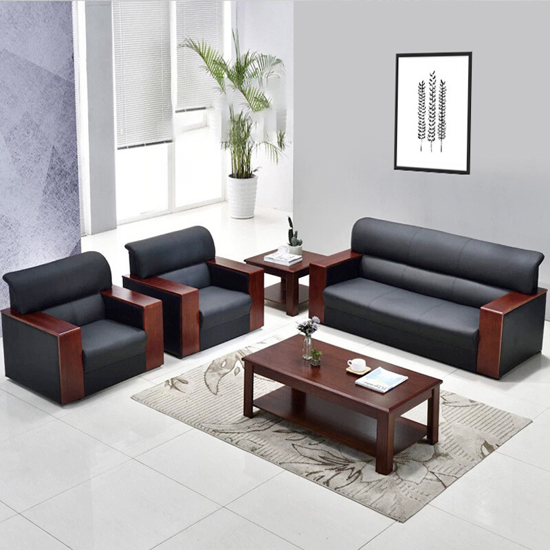 优惠办公室沙发茶几组合牛皮简约现代商务三人位接待会客西皮家具