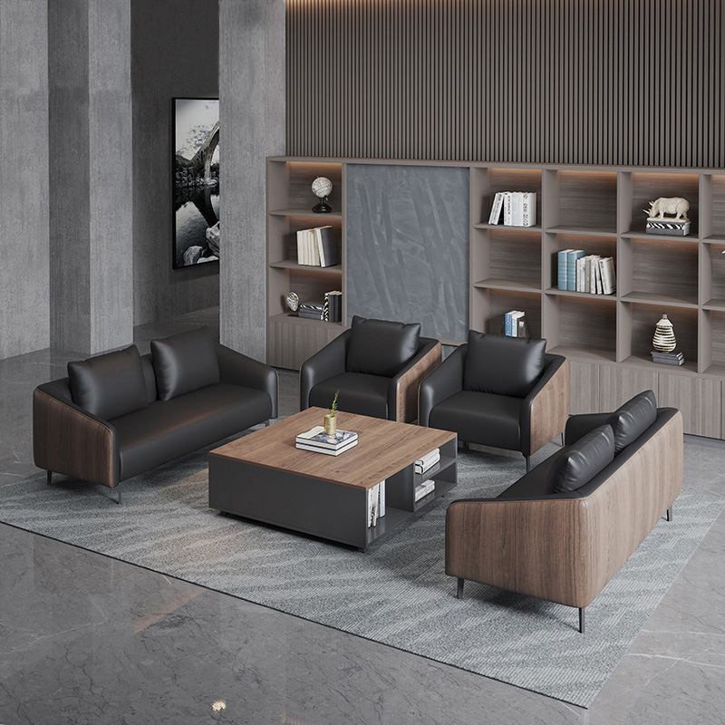 现代简约办公沙发商务洽谈会客时尚商务办公接待牛皮沙发茶几组合