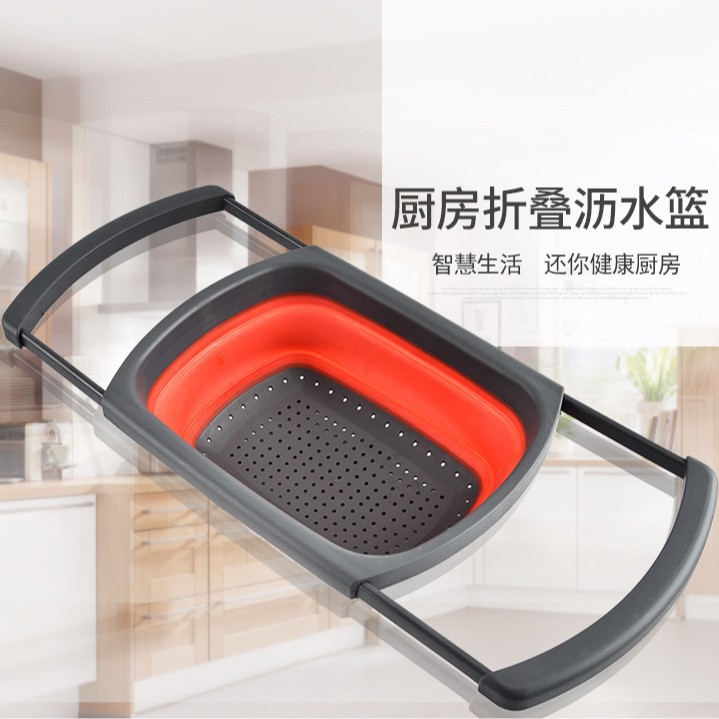 跨境家用厨房长方形沥水篮可拉伸塑料果篮可折叠洗菜篮厂家直销
