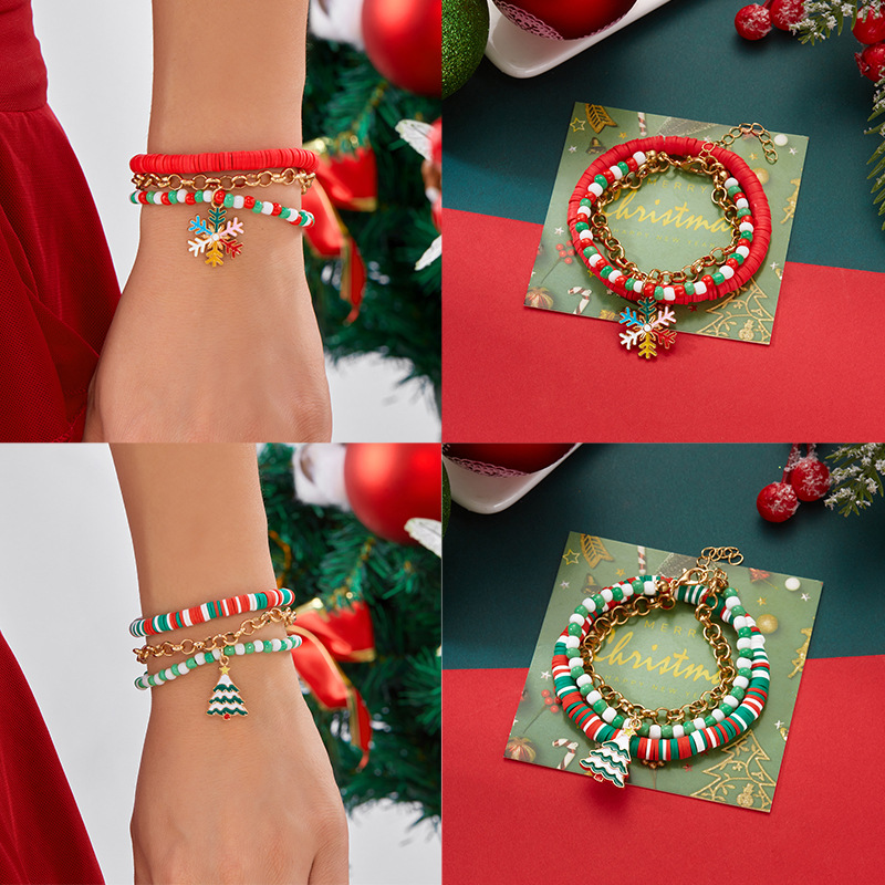 2025新款圣诞节软陶手链套装雪花圣诞树圣诞老人吊坠串珠手串批发