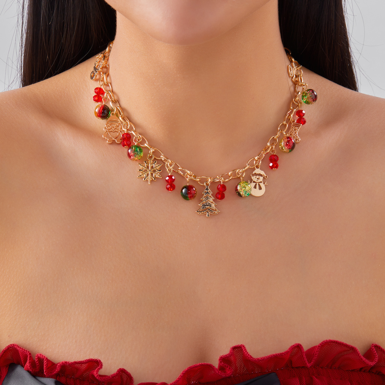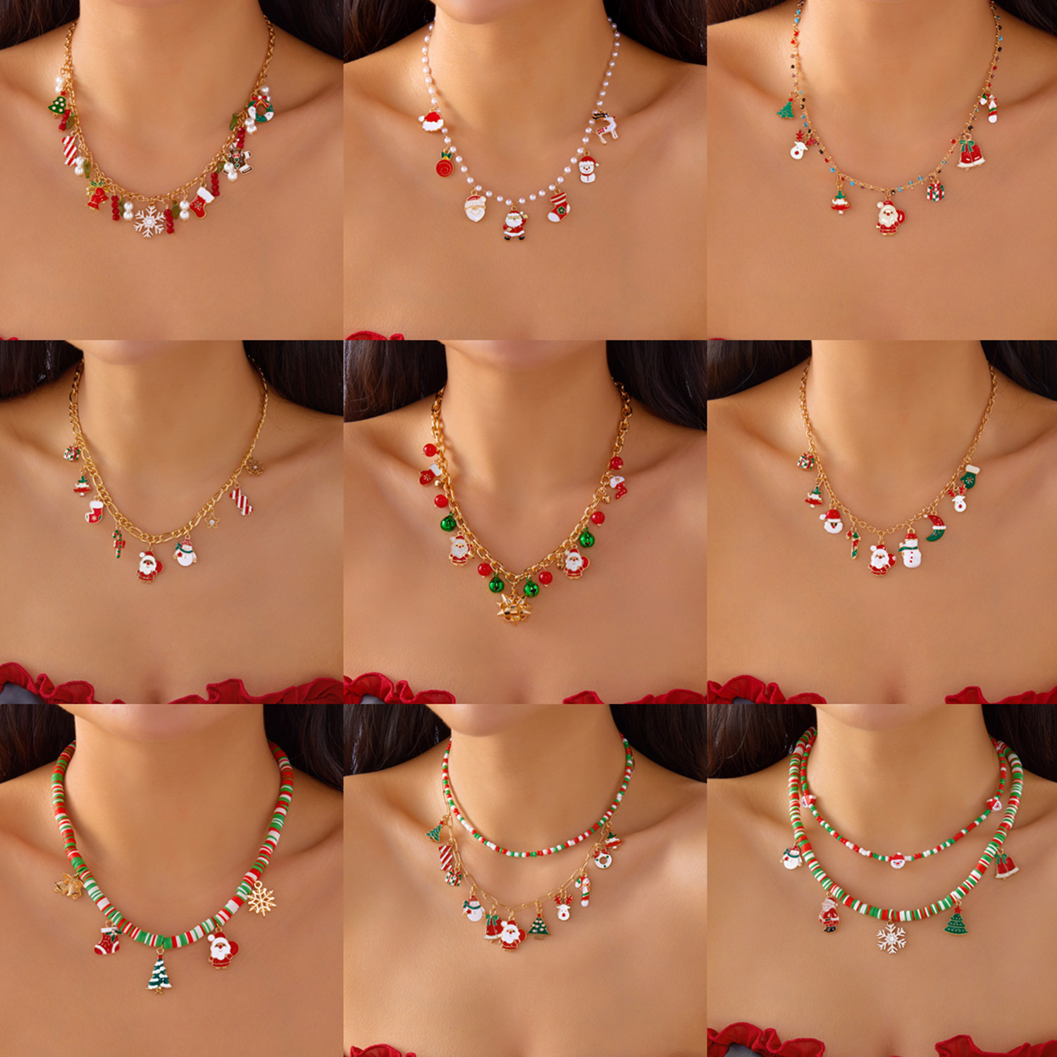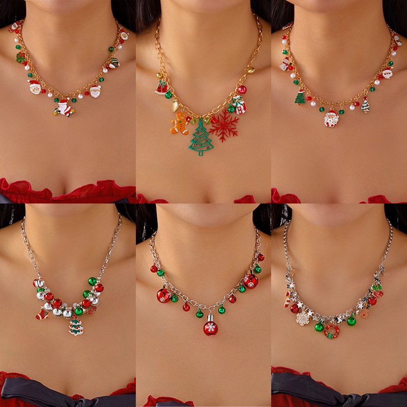 跨境欧美圣诞节项链时尚简约圣诞树老人雪人多配件吊坠锁骨链批发