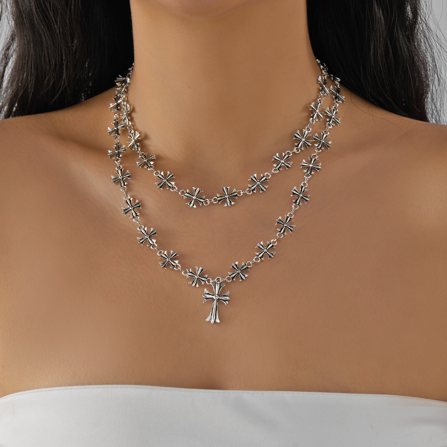 欧美跨境热销复古金属十字架项链时尚简约街头潮流嘻哈锁骨链饰品