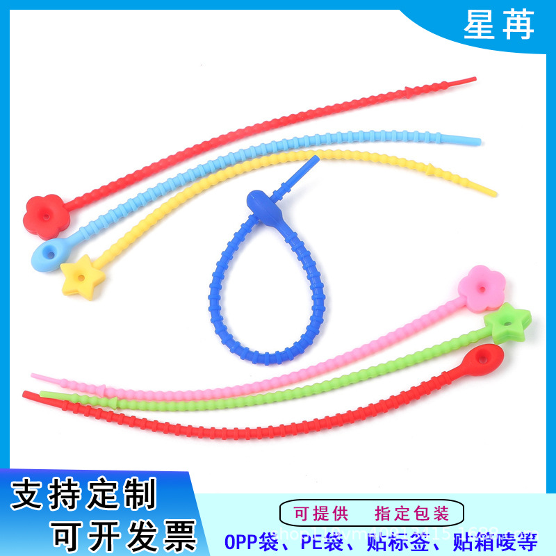 跨境新款蝌蚪硅胶扎带数据线收纳自锁彩色捆 DIY公仔箱包饰品挂绳