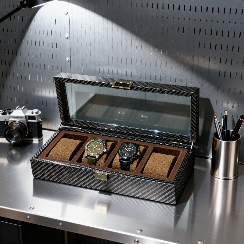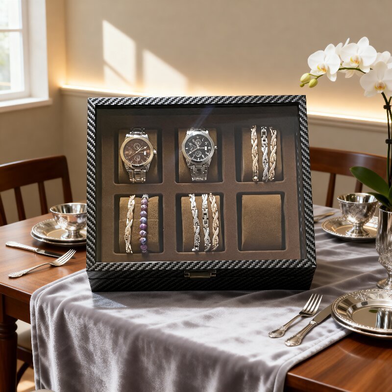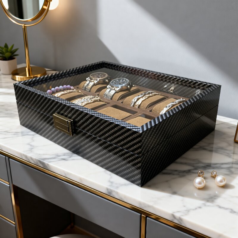 碳纤纹手表首饰收纳盒高档精致皮革手表收纳盒首饰腕表收藏展示盒