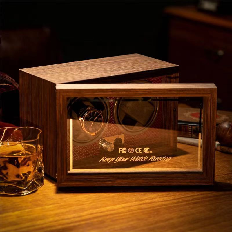 黑胡桃木质立式机械手表透明自动摇表器转表器晃表器旋转表盒批发