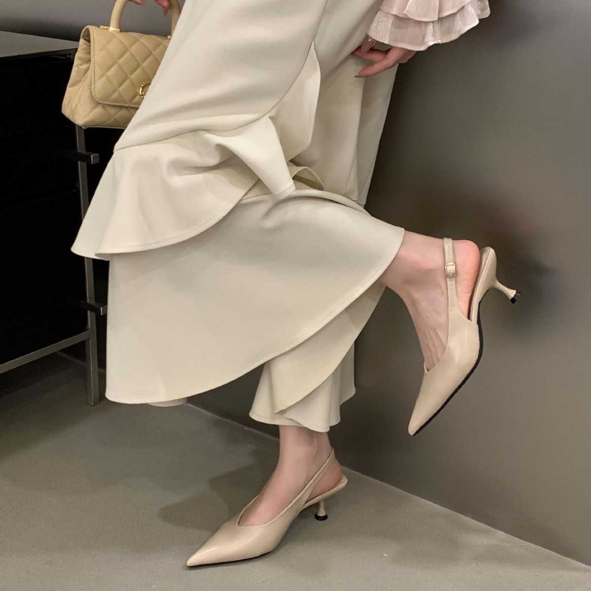 绝美仙女后绊带包头凉鞋女2026新款气质法式高跟鞋细跟尖头小跟鞋