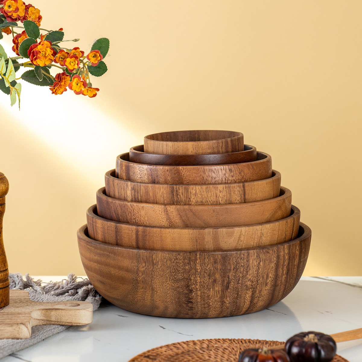定制相思木饭碗沙拉碗大号汤碗木制面碗复古日式拉面碗家用个性图