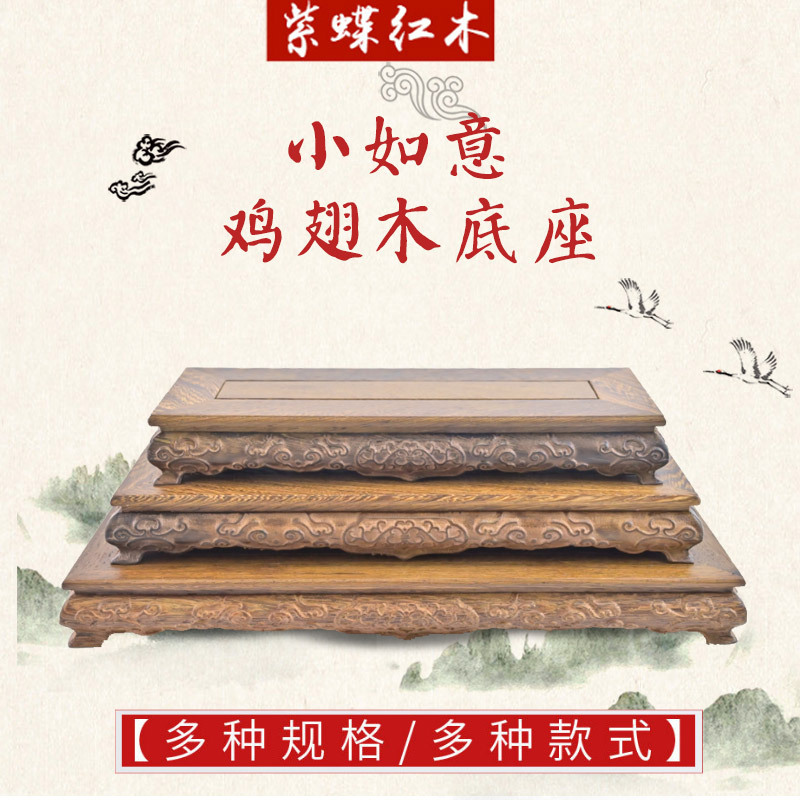 红木鸡翅木底座海马机实木陶瓷奇石盆景花瓶摆件创意工艺品底座