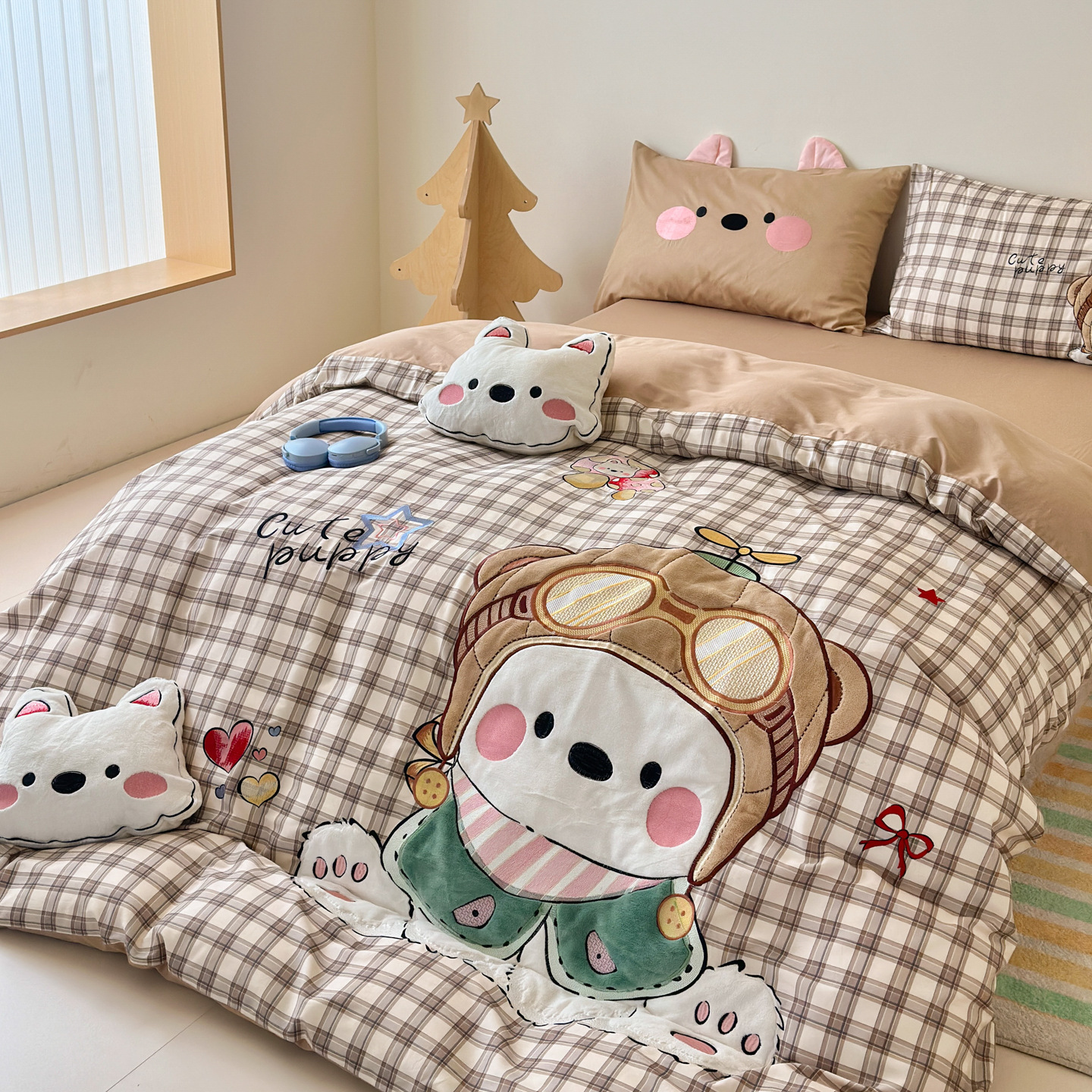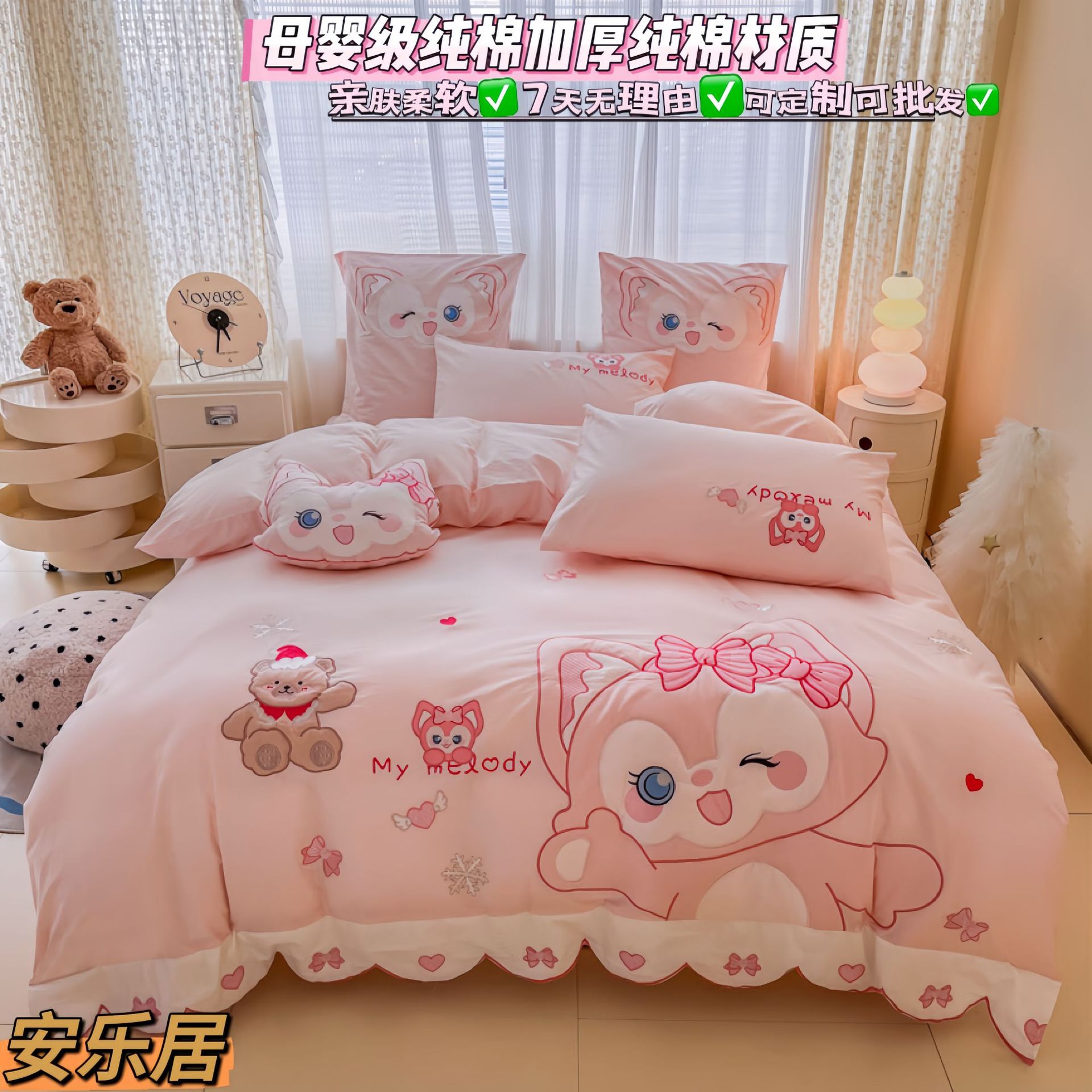 A类母婴级卡通全棉四件套ins可爱刺绣裸睡亲肤床单被套纯棉四件套