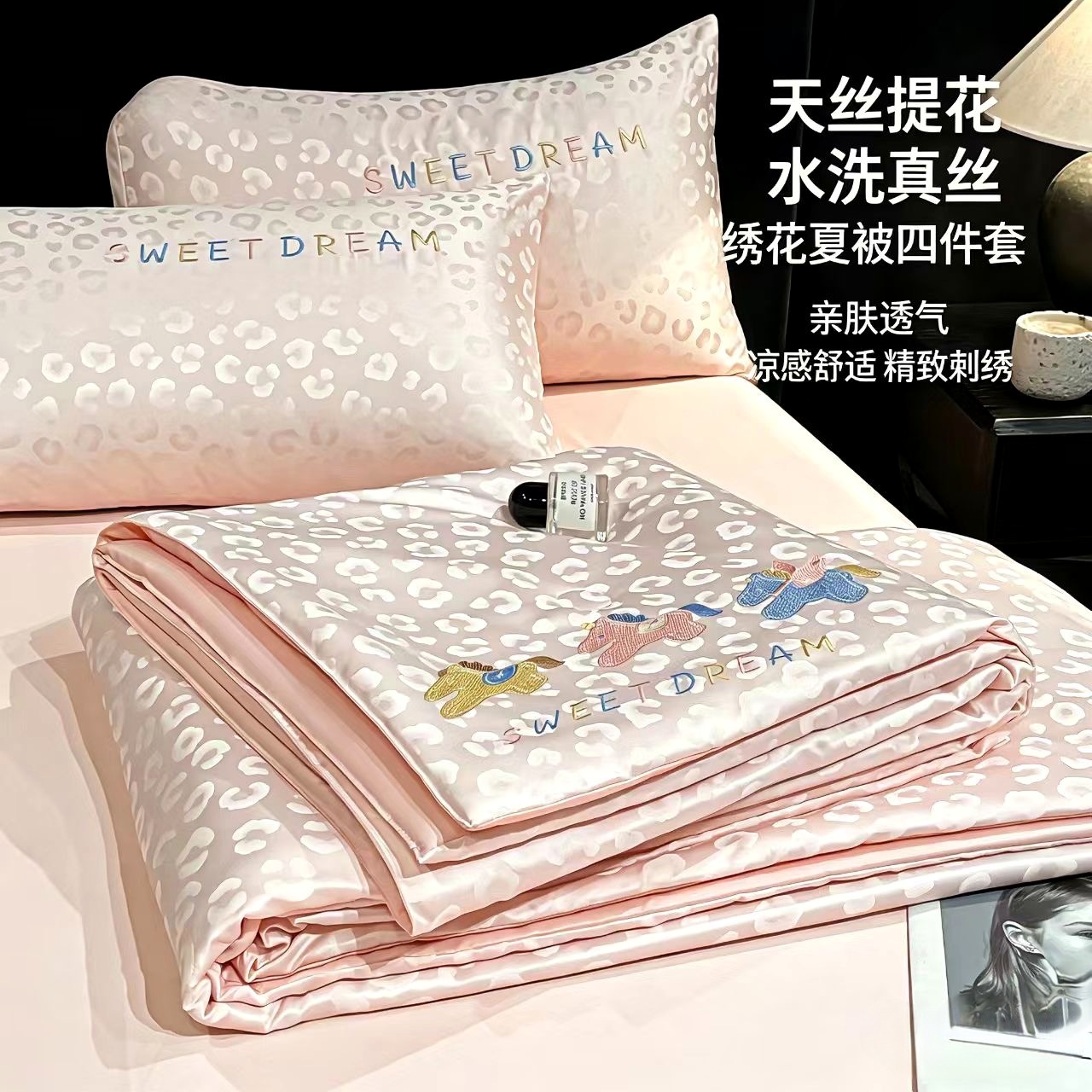 轻奢天丝提花水洗真丝绣花夏被四件套夏季冰丝夏凉被空调被可机洗