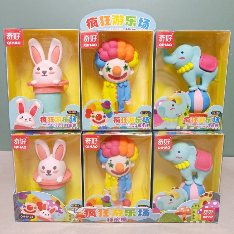 奇好8428疯狂游乐场3D橡皮擦可爱小丑大象兔子可拆卸拼装除屑擦批