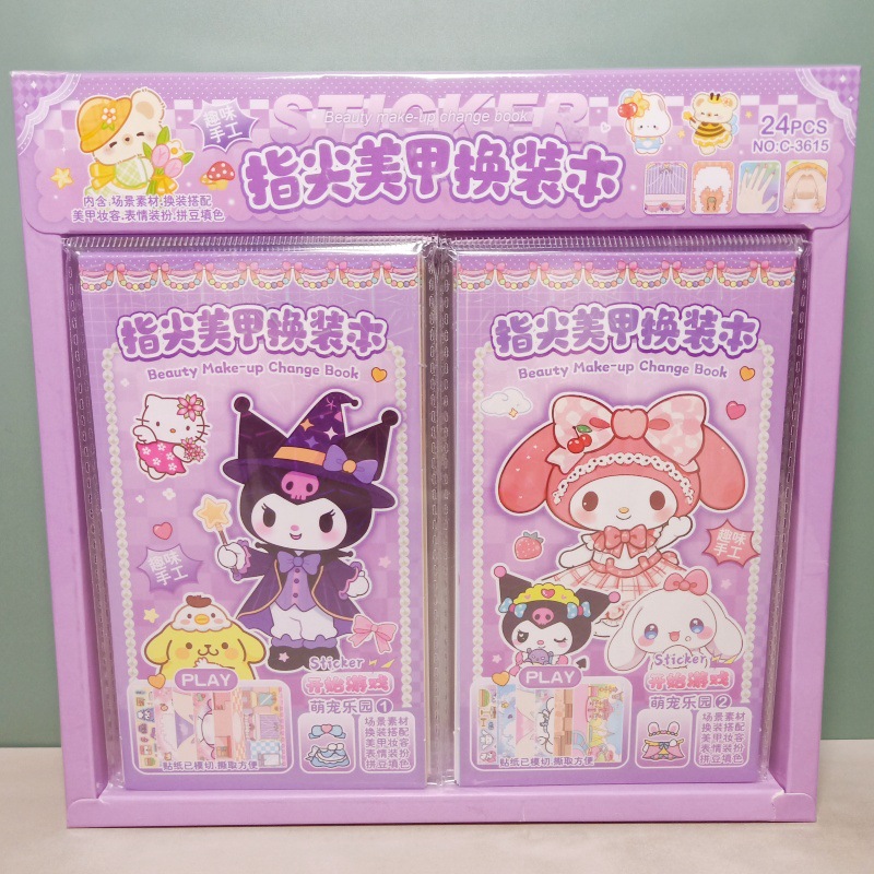 外贸三丽鸥库洛米指尖美甲换装本可爱猫咪玉桂狗文具贴随心搭配批