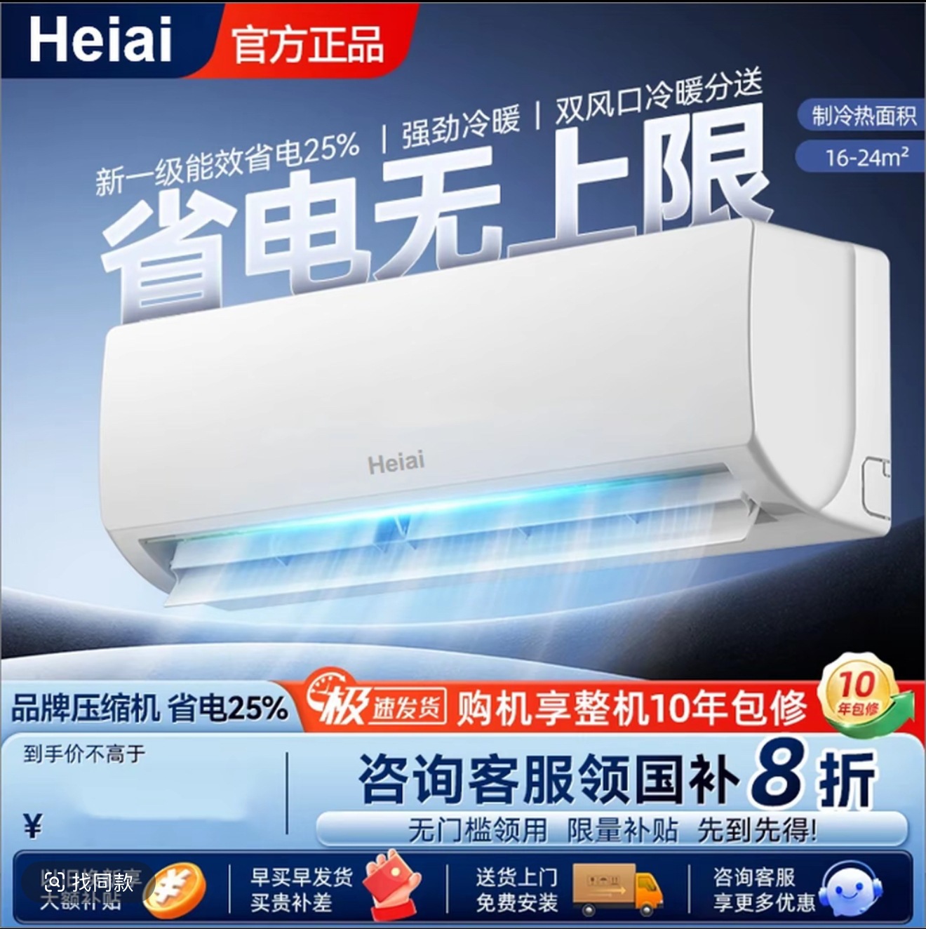 【国补33%】Heiai小神童壁挂式空调大1.5p冷暖新一级节能家用变频