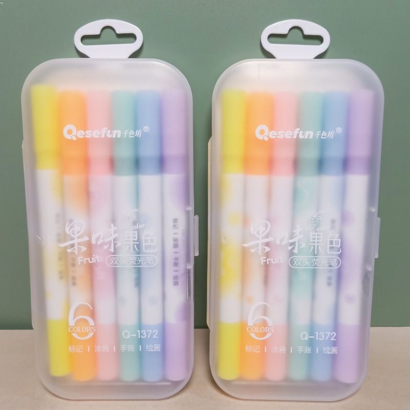 外贸果冻六色双头荧光笔学生果香味划线标记笔彩色记号笔手帐笔批