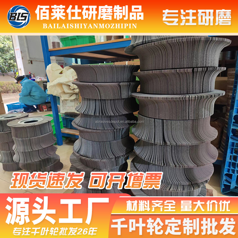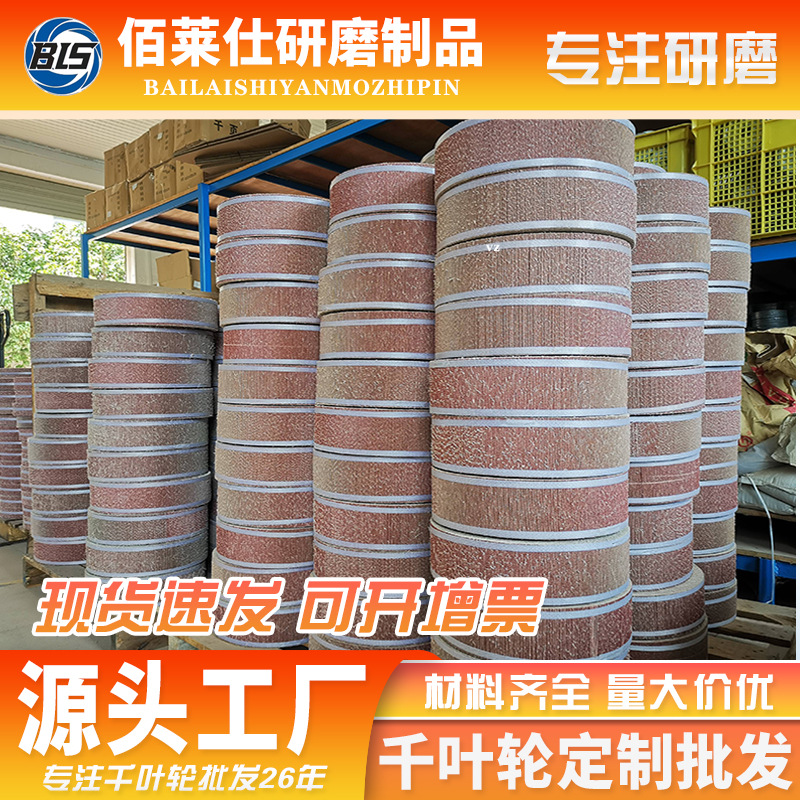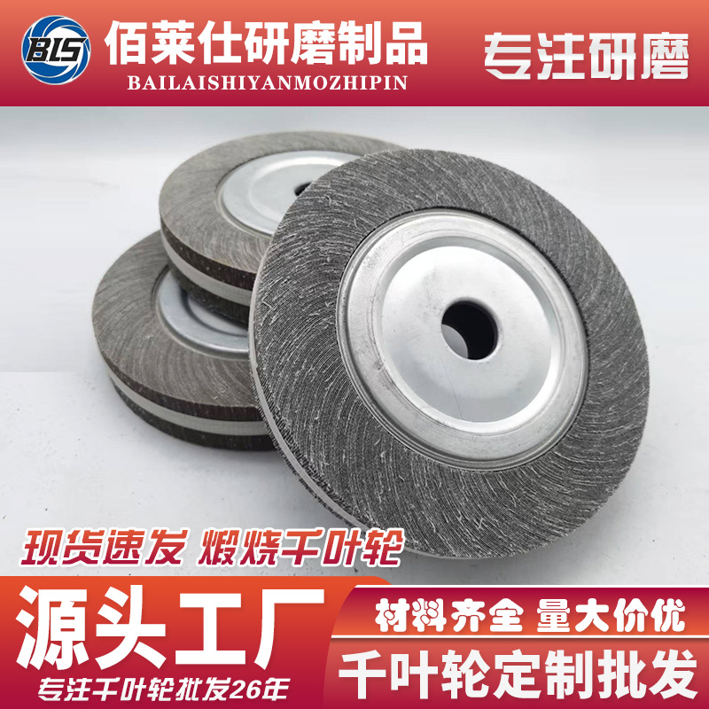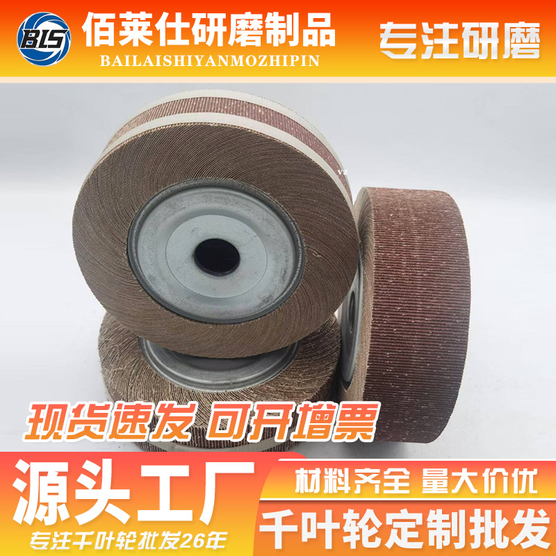 厂家批发 千叶轮40-1000目砂纸卷煅烧砂布轮不锈钢千页轮钛抛光轮