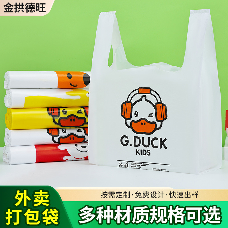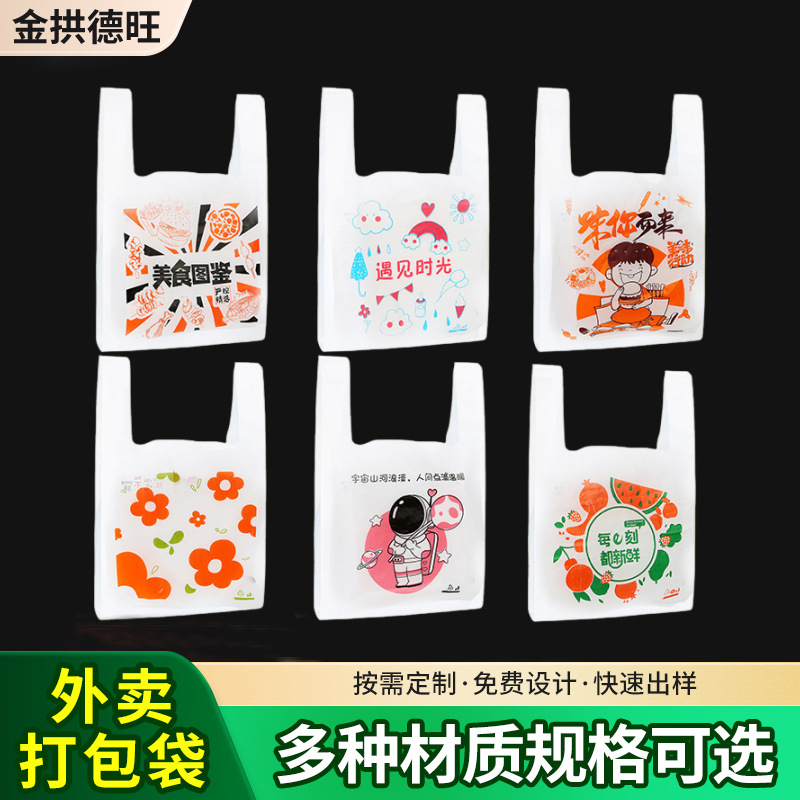 跨境现货食品打包袋 PE塑料印花背心袋 超市购物外卖手提方便袋