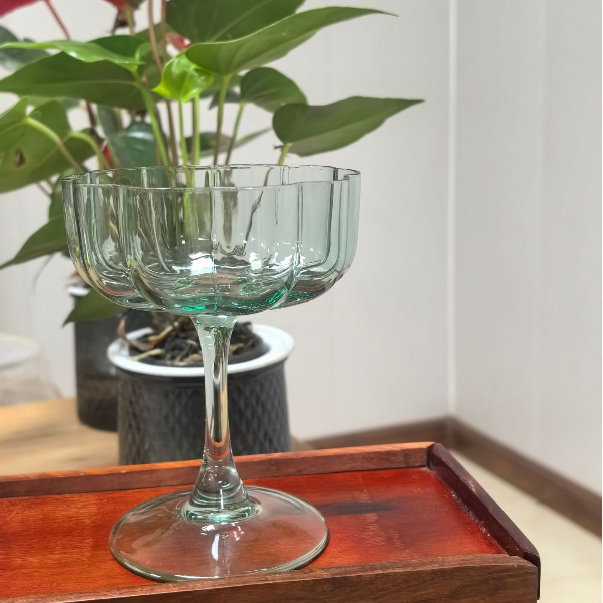 厂家批发彩色花鸡尾酒花瓣玻璃高脚杯葡萄酒水晶冰激凌花瓣设计