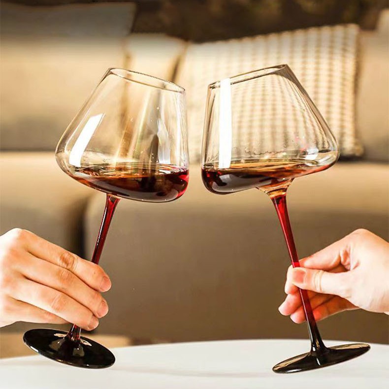 轻奢风火烈鸟斜口粉色红酒杯家用水晶玻璃高脚杯葡萄酒杯礼盒批发