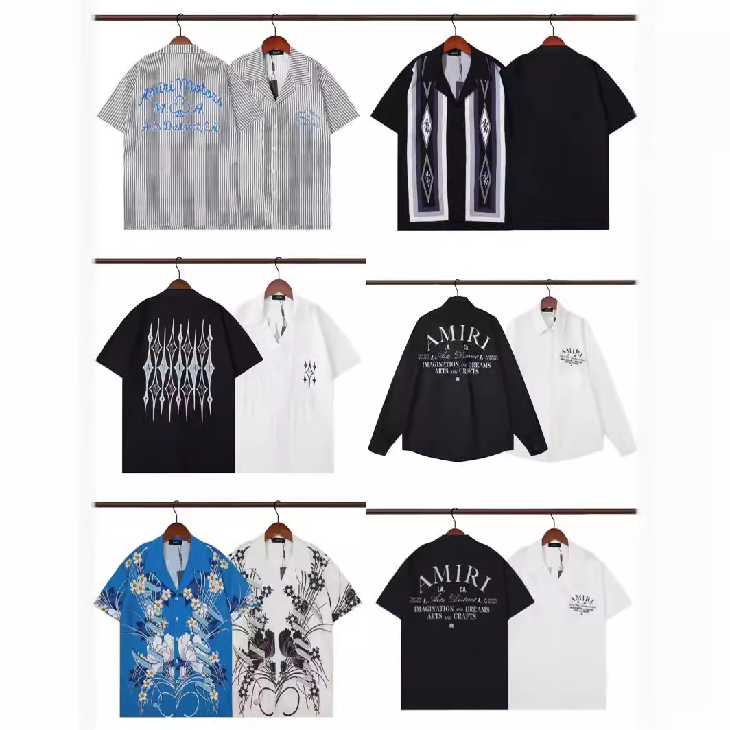 夏季新款amiri短袖衬衫 经典字母logo印花Amiri 潮牌男女衬衫衬衣