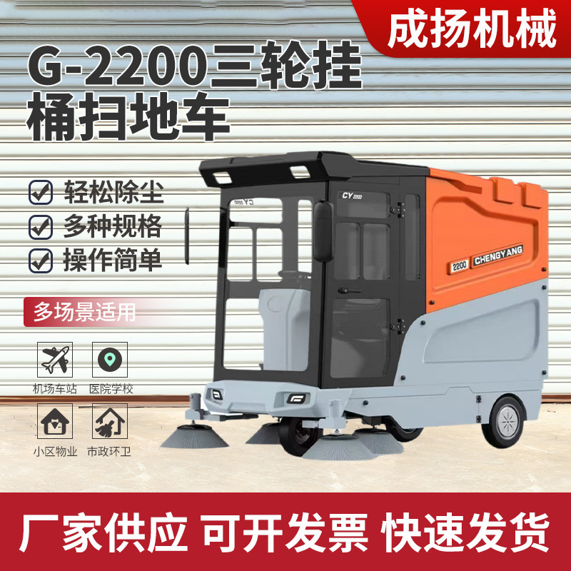全封闭道路垃圾树叶清扫车扫室外电动扫吸车G-2200三轮挂桶扫地车