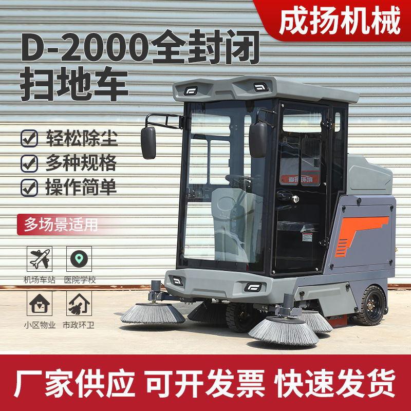2000全封闭电动驾驶式扫地全封闭工厂小区物业室外垃圾树叶清扫车