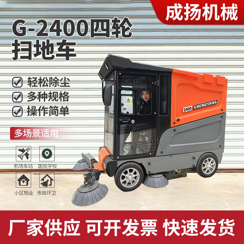 G-2400四轮扫地车全封闭道路车间扫地车室外电动扫吸一体