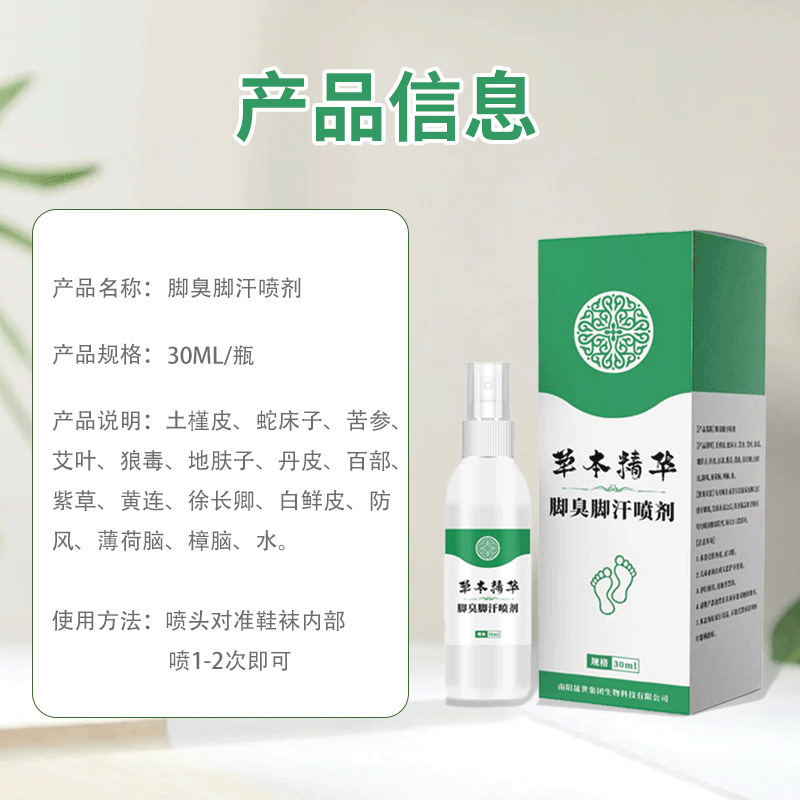 脚臭脚汗喷剂鞋袜除臭止痒足部护理液艾草草本脚气喷雾厂家批发