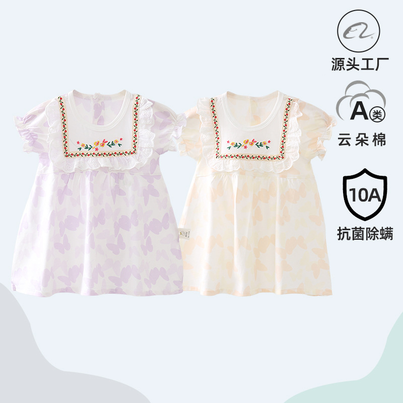 【全网热销】女童夏季短袖连衣裙A类纯棉女孩公主裙婴儿裙子抗菌