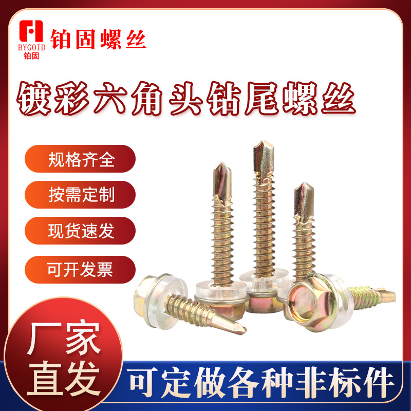 镀彩六角头钻尾螺丝厂家六角自攻螺钉外六角钻尾燕尾自攻自钻螺丝