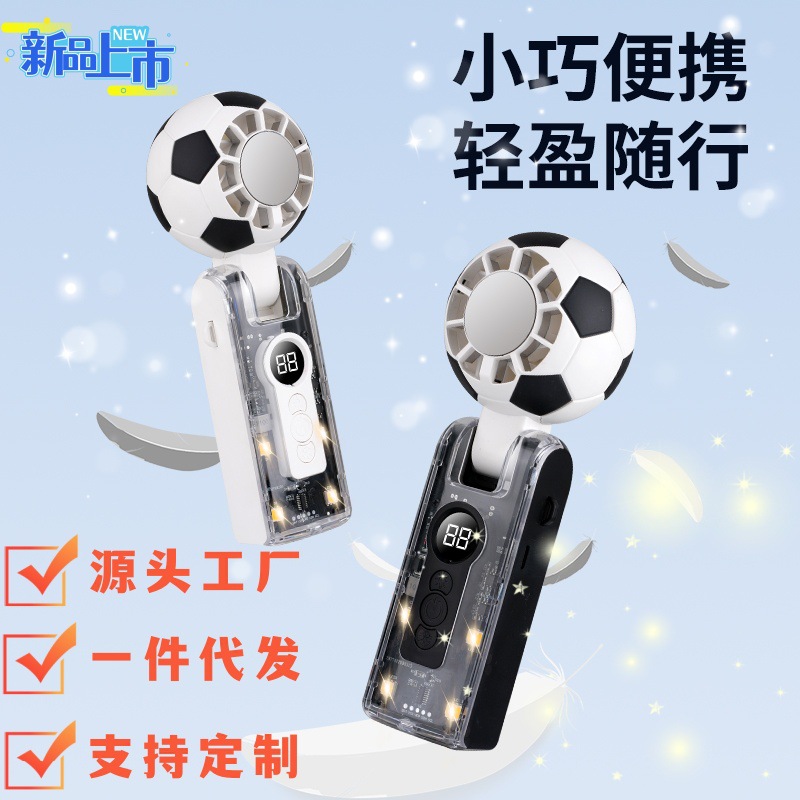 跨境新款X68足球风扇世界杯主题手持风扇冰敷降温可折叠透明机甲