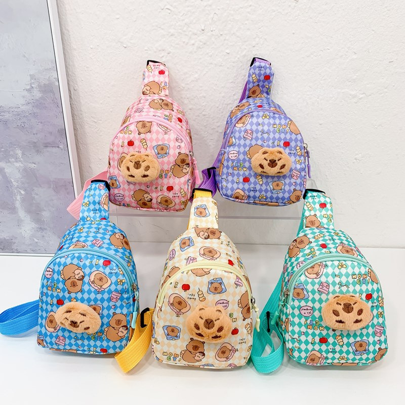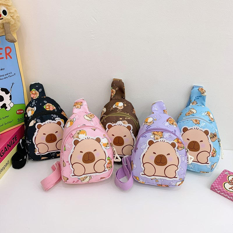 卡皮巴拉印花儿童包包卡通可爱洋气宝宝胸包斜挎包批发跨境