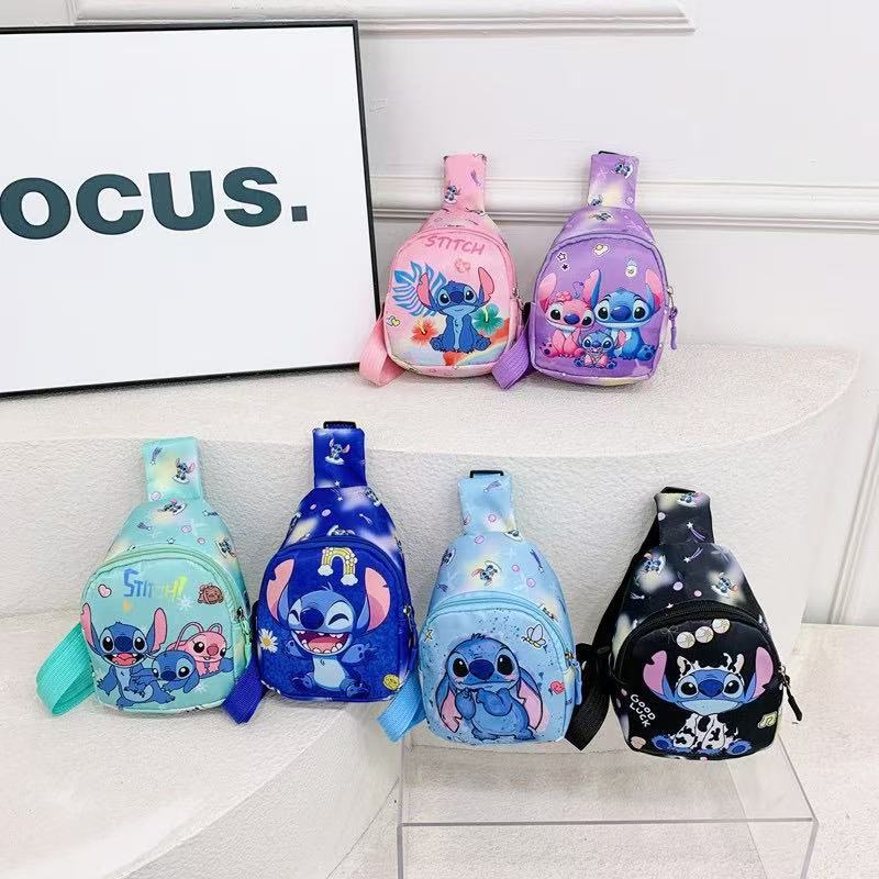 2025卡通儿童胸包时尚户外休闲斜挎包男女童可爱史迪仔零钱包跨境