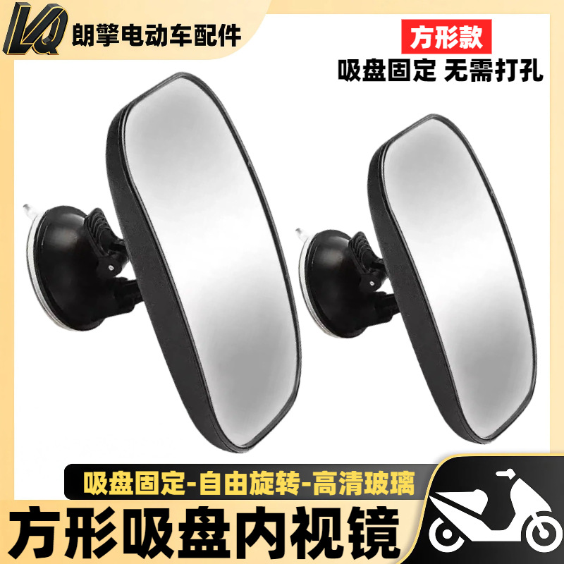 电动三轮车内视镜四轮车后视镜篷车方凸面形吸盘倒车镜免打室内镜