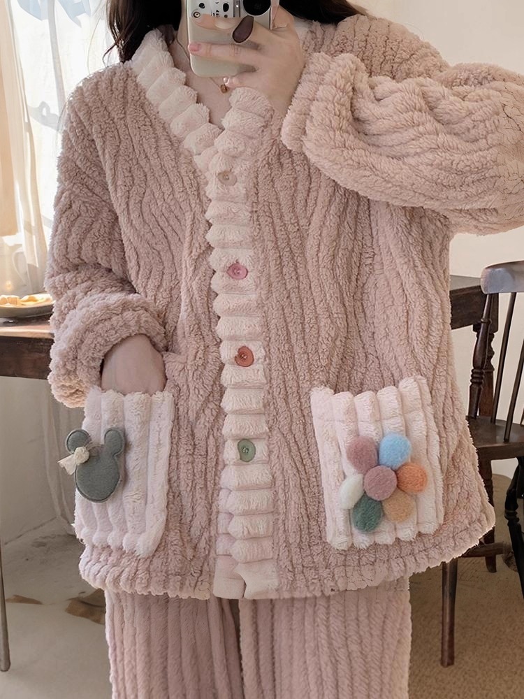 珊瑚绒睡衣冬季女款加绒加厚2025年新款秋冬款法兰绒毛绒冬天绿色
