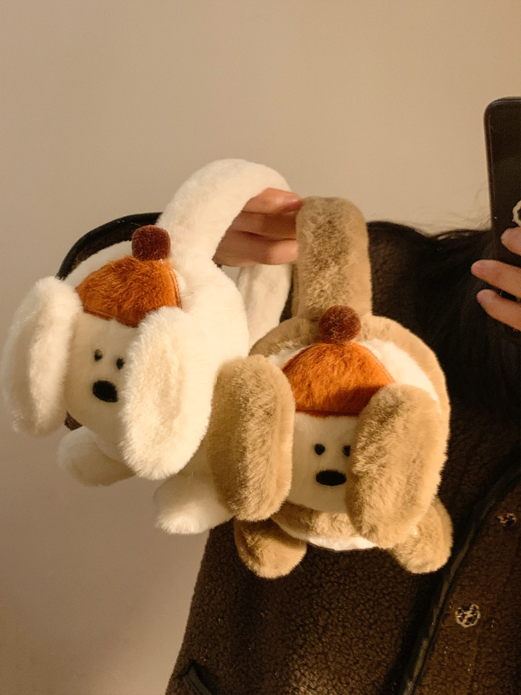 可爱毛绒小狗耳罩女冬季保暖骑行护耳防冻防风耳暖耳套耳包耳捂子