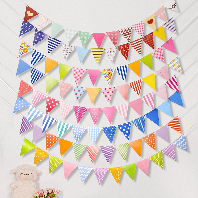卡通三角旗国庆节幼儿园教室儿童生日商场装饰品布置拉旗拉花彩旗