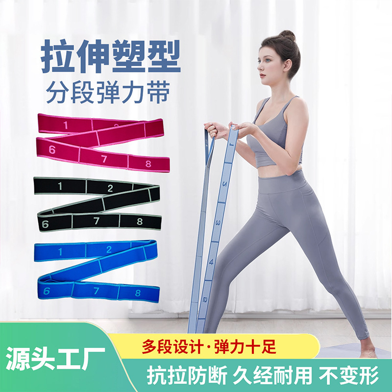 工厂瑜伽弹力带开背开肩健身训练器材分段数字伸展带拉力绳