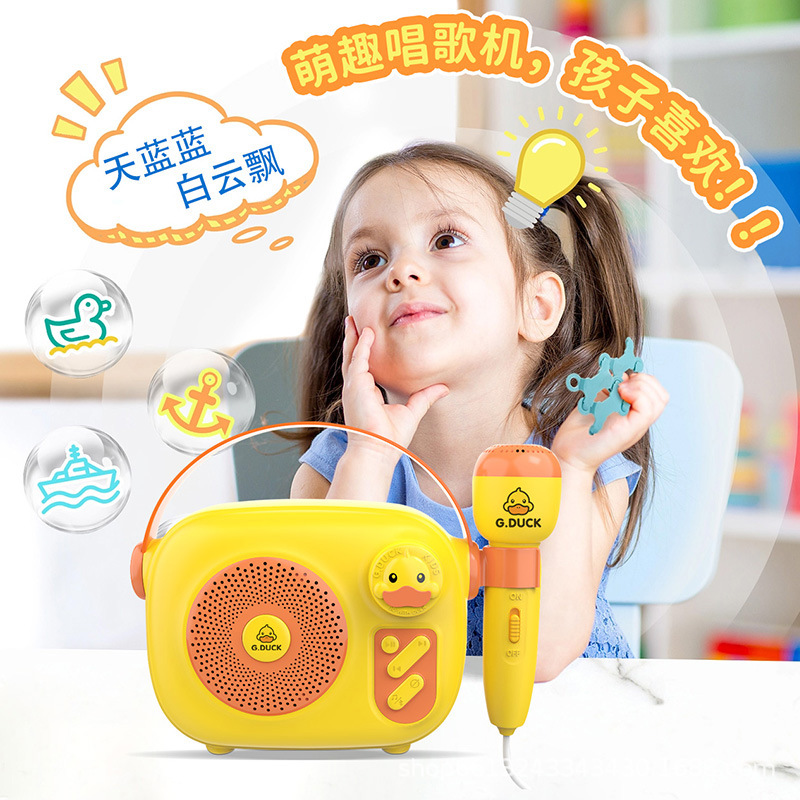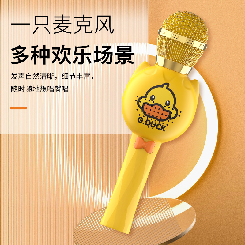 小黄鸭儿童话筒音响一体麦克风卡拉ok唱歌机无线蓝牙充电款玩具