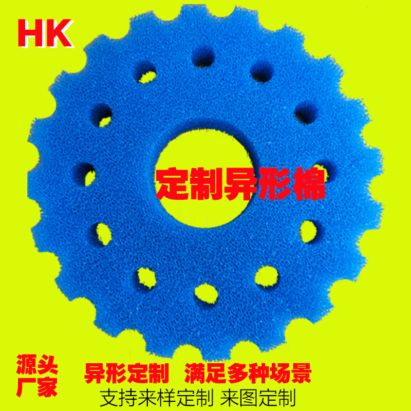 蓝色异形切割齿轮过滤海绵高弹透水高效过滤棉汽摩滤芯垫衬棉厂家