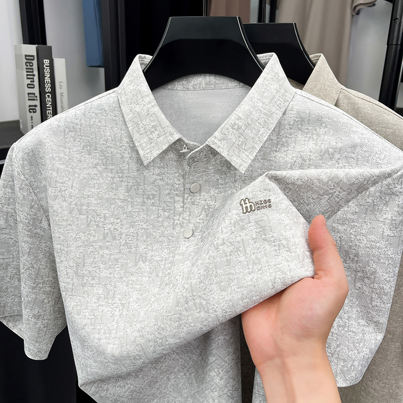 2026轻奢小蜜蜂凉感速干短袖polo衫男士短袖免烫高端提花翻领t恤